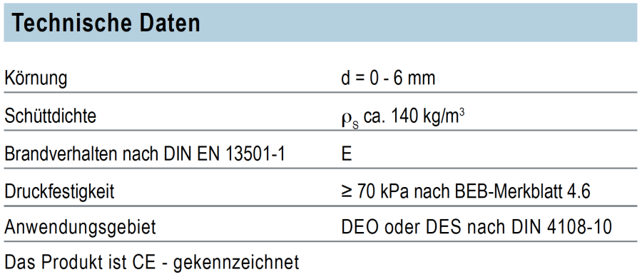 Hochbelastbare gebundene Ausgleichsschüttung aus dem geblähten Vulkangestein Perlit unter Nass- und Gussasphaltestrichen gemäß BEB-Merkblatt 4.6.